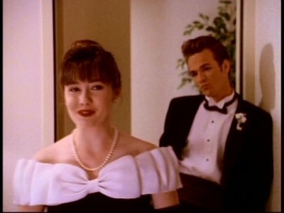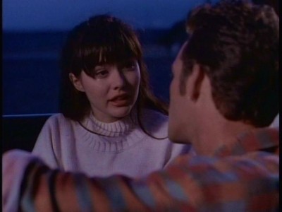 Following their tumultuous trip to Mexico, and a brief period of teenaged rebellion-inspired and ill-conceived co-habitation, Brenda and Dylan spent most of season three’s summer episode apart: Brenda in Paris with Donna (and a hunky American played by Dean Cain) and Dylan on the beach with Kelly, in a storyline that found Brenda’s boyfriend and her best friend developing feelings for another. Before long, 90210 had on its hands that most stalwart of soap opera plotlines, the love triangle, as Dylan was forced to choose between Brenda and Kelly. Later in the season, after milking the triangle for all it was worth, Dylan did just that, surprising fans by choosing Kelly over Brenda. In the process, the central romantic paradigm of the series was uprooted, and a new “one true pairing” was introduced, that of Dylan and Kelly, a pairing which, thanks to Shannon Doherty’s eventual departure from the series, ran even longer and became more twisty and turny (not resolving until the very end of the series, in fact) than that of Dylan and Brenda.