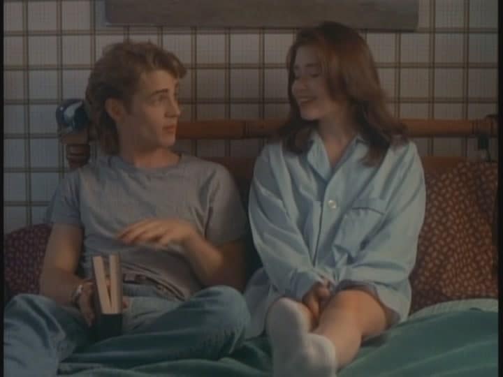 “Isn’t It Romantic?” also introduces the series’ relatively frank approach to sex, as a subplot in the episode involves a famous actor coming to West Beverly High to give a speech during a sex ed class, and announces that she has AIDS. 90210 came of age in the midst of the AIDS crisis, and for all the buzz at the time over the show’s depiction of sex (and, to be clear, it definitely made the sex lives of its teenage characters into plot points), it also wasn’t shy about emphasizing the ramifications of sexual relationships, be they physical, mental, or emotional. Rather than glorifying teenage and pre-marital sex, the show really aimed to start a dialogue about sex, and those efforts began in earnest with this episode. The show wouldn’t always succeed in this goal, and more or less gave it up entirely as the characters grew and the show aged away from the years when there was very much a culture of fear surrounding sex, but at the time, it was willing to embrace subject matter from which most network TV shows were running.