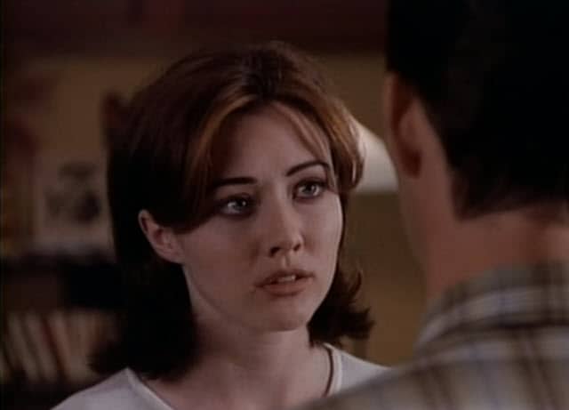 Dylan McKay, the James Dean-esque bad boy who compared himself to Byron—”mad, bad, and dangerous to know”—in his first appearance in the show’s second episode, is one of the series’ earliest breakout characters, but he existed initially only as a friend for Brandon. He doesn’t really come to be the Dylan fans know and love until the tenth episode of the series, when Dylan, angry at his oft-absent, shady financier father, over-dramatically smashes a flower pot at Brenda’s feet (in a telling display of how this show will handle big emotions going forward: as histrionically as possible). Brenda, rather than running for the hills, falls for him even harder, and the Dylan/Brenda romance is born. It becomes the signature relationship of the series (at least in the early goings), one which will, whether in its on or off mode, provide a spine to much of the series’ narrative throughout Brenda’s tenure on the show, and lead in turn to a number of other significant and notable moments.