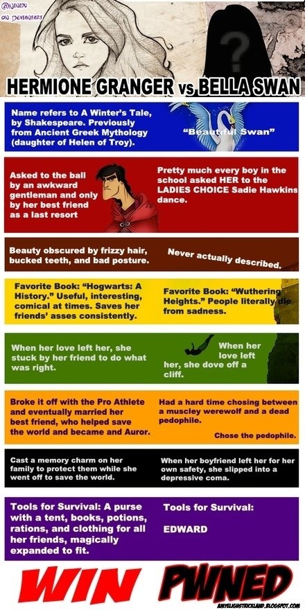 Here is a chart comparing Twlight’s Bella Swan to Harry Potter’s Harmonie Granger